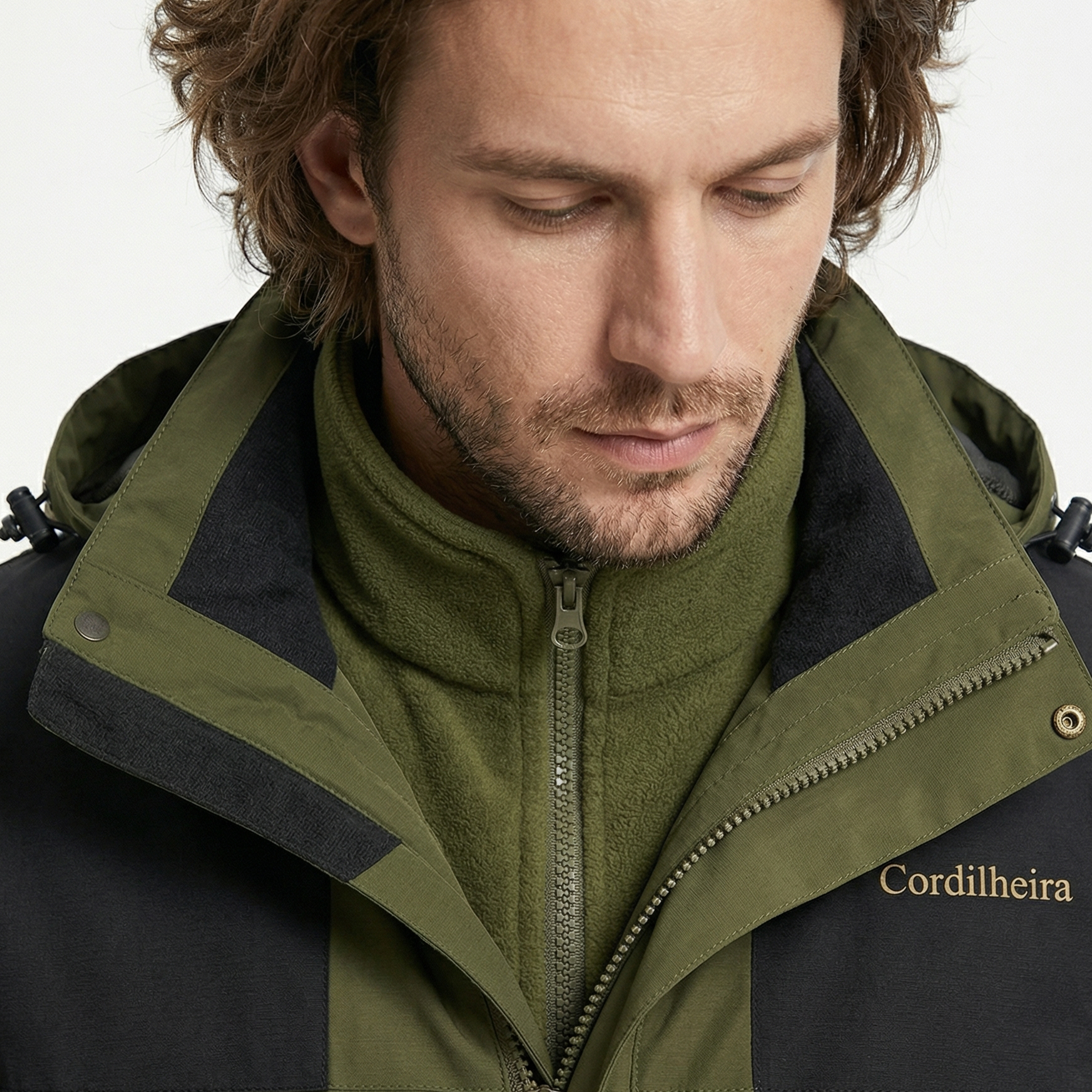 Fechamento meio-zíper: Diferente das jaquetas convencionais, os anoraks costumam ter um fechamento de zíper que vai até o peito, não até a cintura. Isso oferece uma combinação de proteção e ventilação.