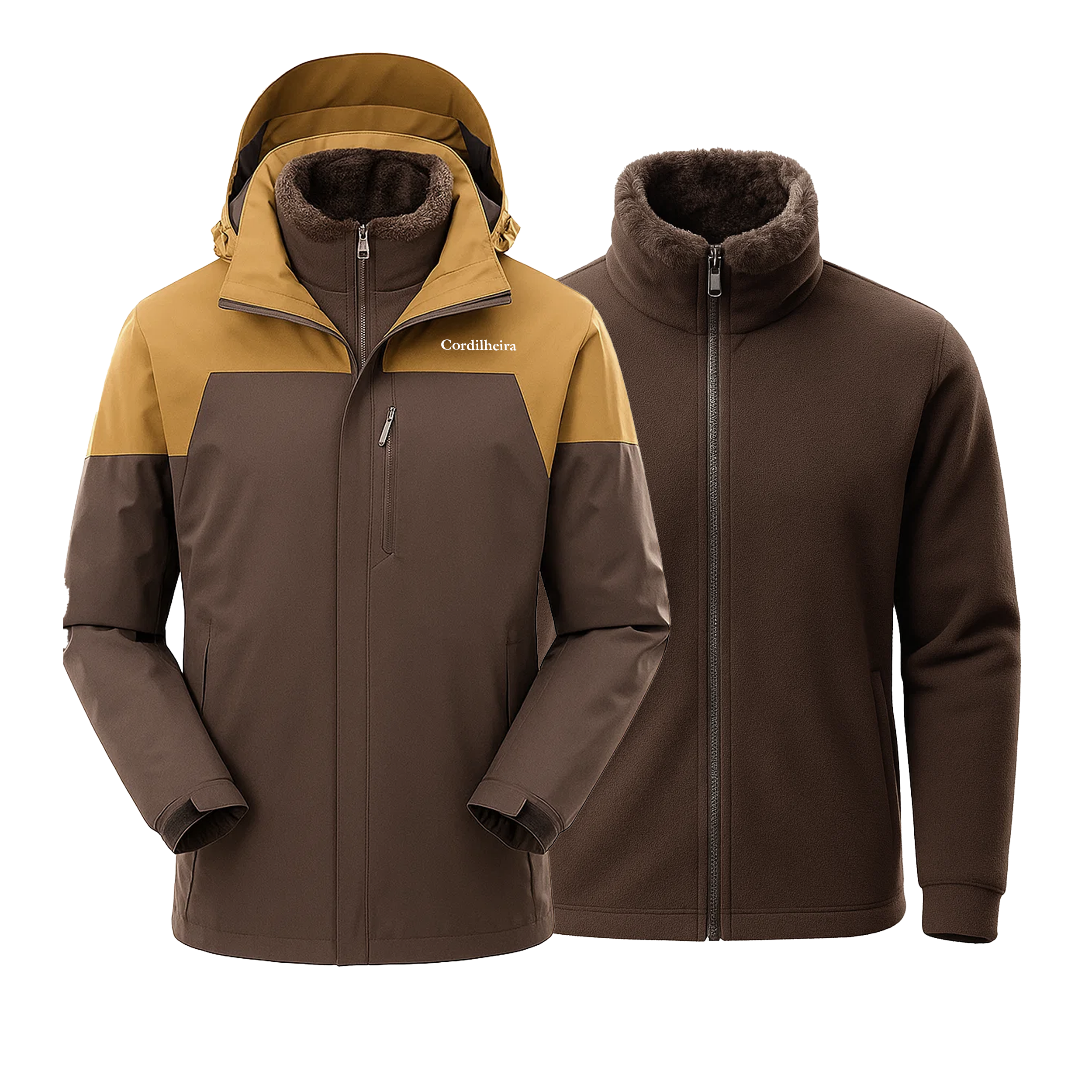 A Jaqueta 3 em 1 Cordilheira Alpine combina uma camada externa impermeável com uma interna em fleece térmico, oferecendo proteção completa contra frio, vento e umidade. Com costuras termo-seladas, zíperes YKK e revestimento Aerogel, garante isolamento eficiente e conforto em qualquer condição. O sistema modular 3 em 1 permite uso das camadas juntas ou separadas, adaptando-se facilmente a diferentes temperaturas.