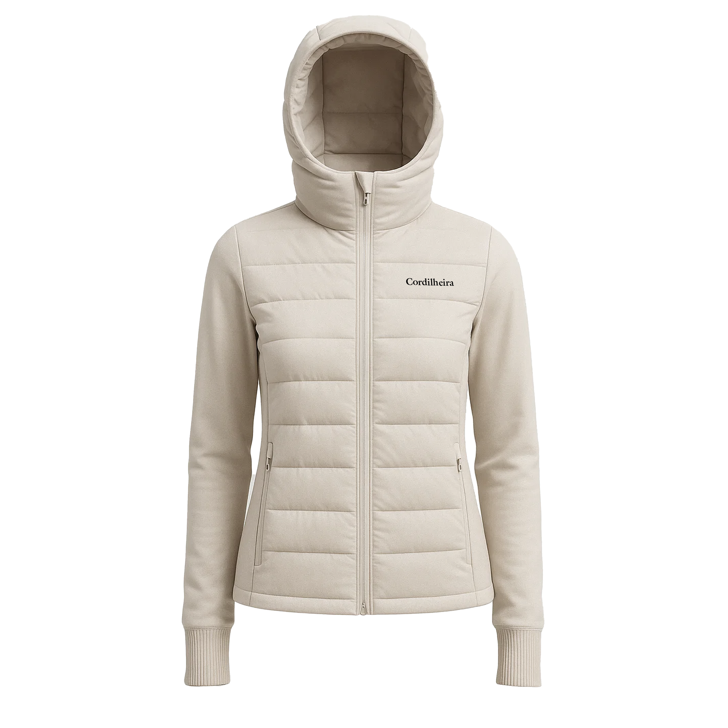 A Jaqueta Puffer Cordilheira Cloud Feminina foi feita para envolver você em maciez leve como estar dentro de uma nuvem sem perder mobilidade. Com enchimento de pluma 90% e alto loft, retém o calor com eficiência em dias frios. As mangas em softshell elástico, capuz anatômico e punhos canelados asseguram conforto e vedação térmica. O acabamento repelente à água e o zíper SBS completam o conjunto para uso versátil, da cidade às trilhas.