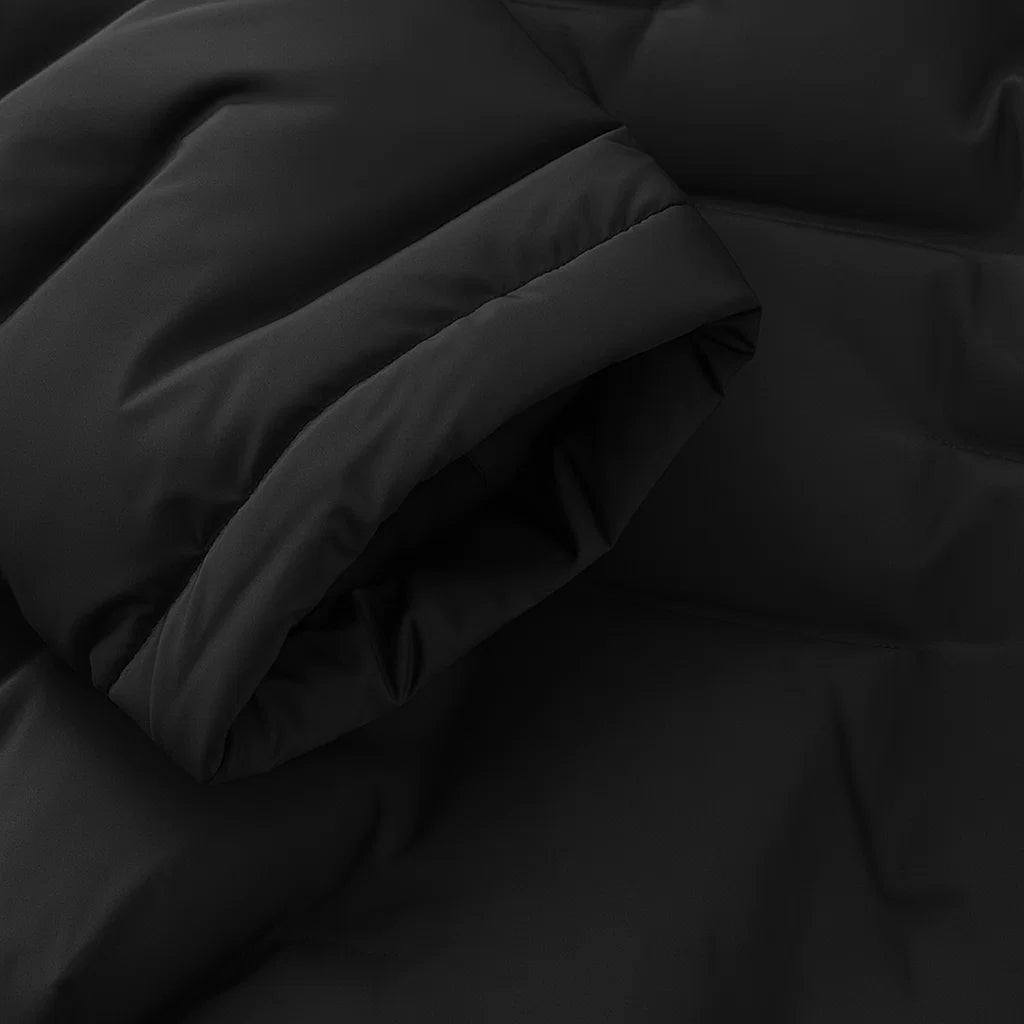 Projetada com forro interno em plumas de ganso, garantindo proteção térmica eficiente nos dias mais frios.